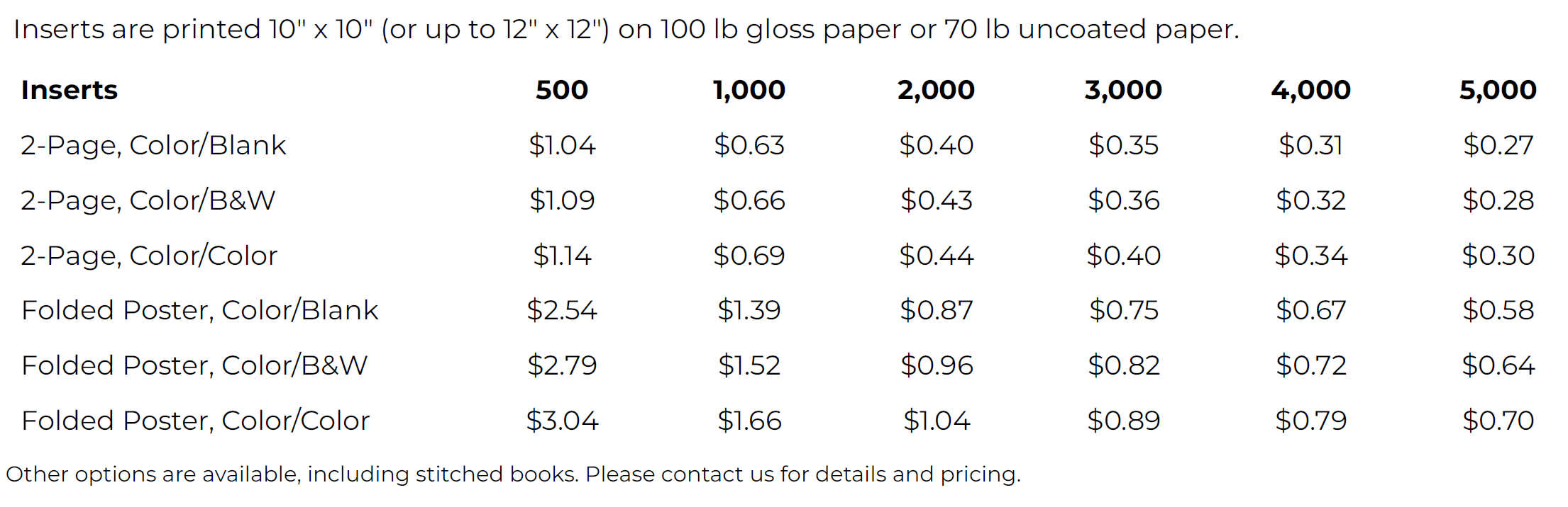 We partner with premium, reliable printing and packaging sources to ensure the quality of your project from start to finish. Print turnaround is approximately six weeks once proofs have been approved. Please contact us for a quote and lead time. (Prices are subject to change.)